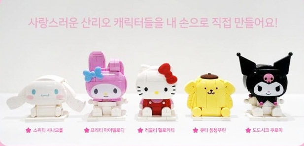 초등 여아들 사이에서 가장 핫한 마이멜로디와 쿠로미 캐릭터로 귀엽게 꾸며진 블록 놀이!